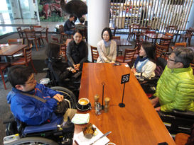 今回二週間のニュージーランド研修を終えて思った事として、障害当事者の声がしっかりと政府や学校に届いているなと感じました。新しい制度を作る時も、新しい校舎を建てる時も、障害当事者の声を聞いて反映させていて、健常者と障害当事者が一緒になって物事を作り出せる環境があることは、絶対に日本に持ち帰って日本でも実現させるべきだと思いました。例えば日本では建築基準法はあるけれどその基準を満たしていても実際に全ての障害当事者にとって利用しやすい建物が出来る訳ではありません。その問題点を私たち障害当事者と一緒になって解決していってみんなが過ごしやすい、利用しやすい社会を作っていけたらいいなと思いました。今回たくさんの団体を訪問しましたがその中で当事者団体の活動がとても盛んだなと感じました。これからより良い社会にしていく為にも私たち障害当事者が声を上げて運動をしていく必要があると感じました。そしてとても印象的だったことは、みんな生き生きしているなと感じました。明るくて笑顔で、熱い想いで活動をしていて、すごくパワーを貰いました。この経験を無駄にせず日本の社会に活かしていかなければいけないと感じました。