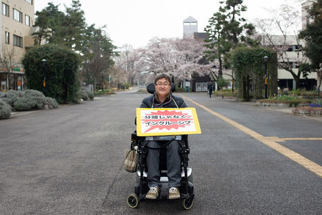 過去4回は水戸市で開催されたこのパレードですが、今年はつくば市での開催となりました。雨の予報が出ていて不安でしたが、当日は雨も降らず、陽も出てくれてよかったです。午前中のパレードには、県内外から約50名の方が参加してくださいました。太鼓を鳴らして、「障害者に合理的配慮を!」や「分離じゃなく、インクルーシブ!」などみんなでコールをしながら、約2㎞を1時間かけて歩きました。車椅子ユーザーたちは、自分の車椅子に社会に対するメッセージの書かれたボードを付けたり、他の人は横断幕やのぼり旗を持ってレードしました。